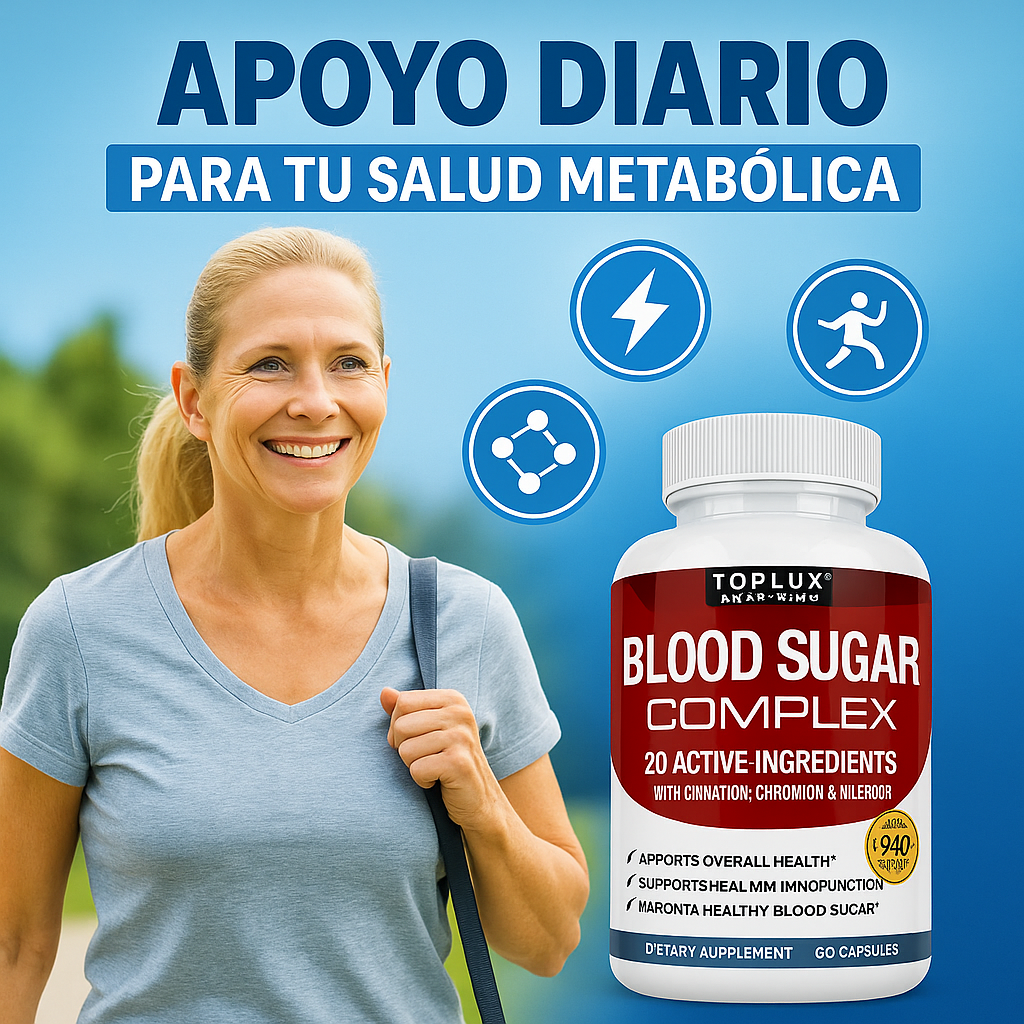 Blood Sugar Complex combina extractos naturales, minerales y vitaminas que ayudan al cuerpo a mantener niveles equilibrados de azúcar y una energía más estable, sin químicos agresivos ni procesos complicados.